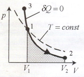 ). Это объясняется тем, что при адиабатическом сжатии 1-3 увеличение давления газа обусловлено не только уменьшением его объема, но и повышением температуры.