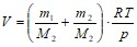 Пример 11. В баллоне содержится кислород m1=80 г и аргон m2=320 г. Давление смеси р= 1МПа, температура Т=300 К. Принимая данные газы за идеальные, определить емкость V баллона.