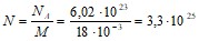 Подставляя в формулу число киломолей, устанавливаем число молекул, содержащихся в объеме: