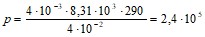 =2⋅10-3⋅8,31⋅103⋅280/(28⋅820⋅10-6)=2,03⋅105 Па.