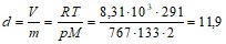 Удельный объем газа d определяем из уравнения Менделеева-Клапейрона:
