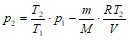 ,где p-давление газа, V - объем газа, Т - абсолютная температура газа, m - масса газа, М - масса одного киломоля газа, R - универсальная газовая постоянная, m/M– число киломолей газа.