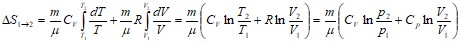 Рассмотрим для примера идеальный газ, который совершает равновесный переход из состояния 1 в состояние 2. Изменение его энтропии