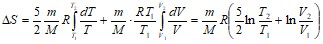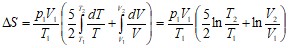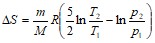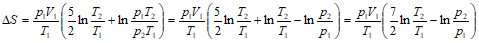 Пример 9. При температуре 250 К и нормальном давлении двухатомный газ занимает объем 80 л. Как изменится энтропия газа, если давление увеличить вдвое, а температуру повысить до 300 К?