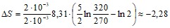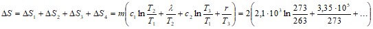 Изменение энтропии ДS3 происходит при нагревании воды от температуры Т2 до температуры кипения Т3=373 К. Величина ДS3 вычисляется аналогично ДS1: