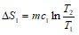 Изменение энтропии ДS1 происходит при нагревании льда от начальной температуры Т1=263 К до температуры плавления Т2=273 К: