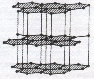 В алмазе каждый атом углерода связан с четырьмя такими же атомами, которые располагаются на одинаковых расстояниях от него в вершинах тетраэдра. В графите атомы углерода упакованы в плоские слои, связанные между собой слабыми ван-дер-ваальсовыми силами.