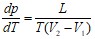 - изменение объема вещества при переходе его из первой фазы во вторую, T – температура перехода (например, в случае плавления – температура плавления