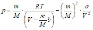 Давление газа, считая его реальным, определим из уравнения Ван-дер-Ваальса: