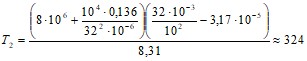 Пример 5. В сосуде под давлением p=8 МПа содержится кислород, плотность которого с=100 кг/м3. Считая газ реальным, определить его температуру и сравнить ее с температурой идеального газа при тех же условиях.