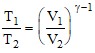 41. γ1 и γ3 - отношения удельных теплоемкостей одноатомного и трехатомного газа с жесткой связью молекул, соответственно: