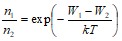 Решение. Распределение частиц по энергиям в силовом поле определяется законом Больцмана: