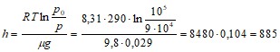 Решение. Распределение давления в однородном поле силы тяжести определяется барометрической формулой