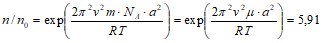 Пример 6. В центрифуге с ротором радиусом a=0,5 м, при температуре 300 К находится в газообразном состоянии вещество с молярной массой 1 кг/моль. Определите отношение n/n0 концентраций молекул у стенок ротора и в его центре, если ротор вращается с частотой н=30 с-1.
