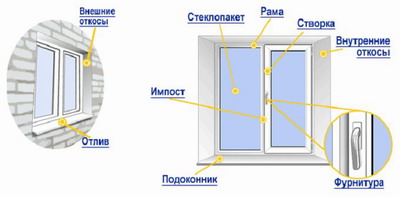 Окно - элемент стеновой или кровельной конструкции, предназначенный для сообщения внутренних помещений с окружающим пространством, естественного освещения помещений, их вентиляции, защиты от атмосферных, шумовых воздействий и состоящий из оконного проема с откосами, оконного блока, системы уплотнения монтажных швов, подоконной доски, деталей слива и облицовок.
