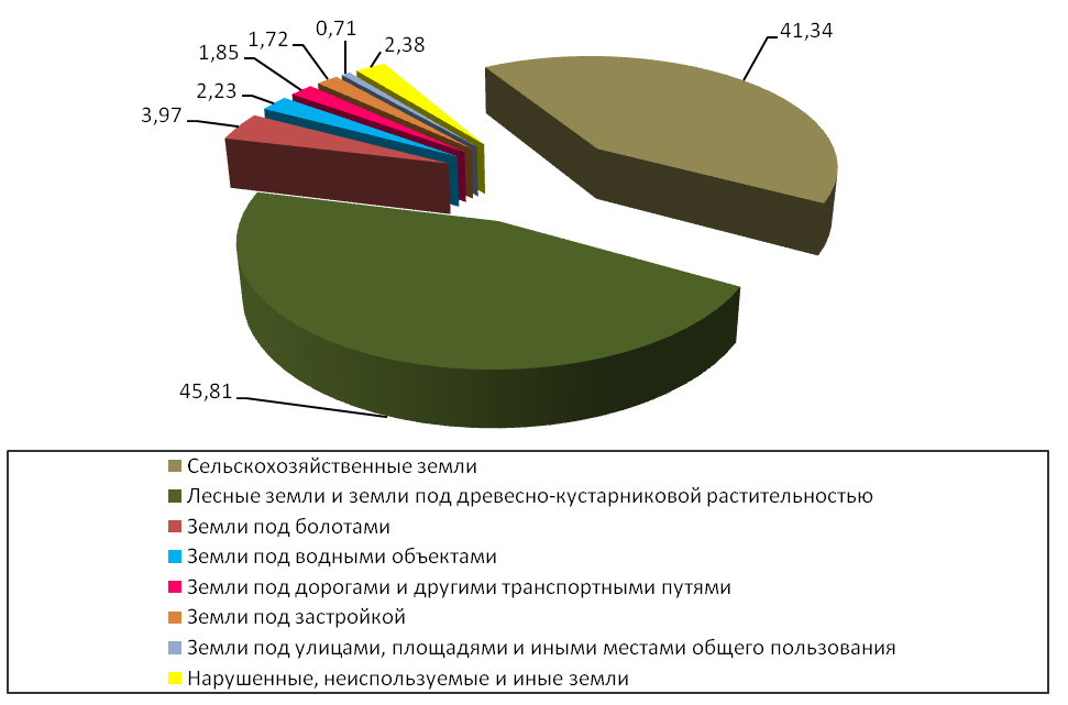 Проявляющаяся в последние годы тенденция к уменьшению площади сельскохозяйственных земель и увеличению площади лесных и лесопокрытых территорий обусловлена оптимизацией структуры землепользования, одним из направлений которой является перераспределение и вывод из оборота малопродуктивных, мелкоконтурных или заболоченных сельхозугодий и их передача в другие виды земель, в том числе в лесные земли.