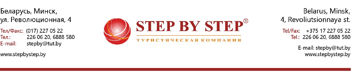 STEP BY STEP - сертифицированный туроператор Сертификат соответствия № BY/112 04.03.071 00644 |