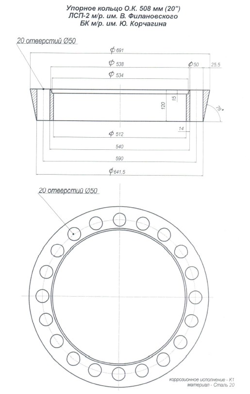 Эскиз упорного кольца обсадной колонны 508 мм (20ʺ) – на 1 листе;