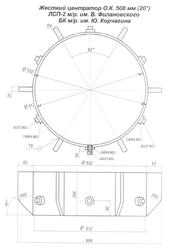 Эскиз жесткого центратора обсадной колонны 508 мм (20ʺ) – на 1 листе;