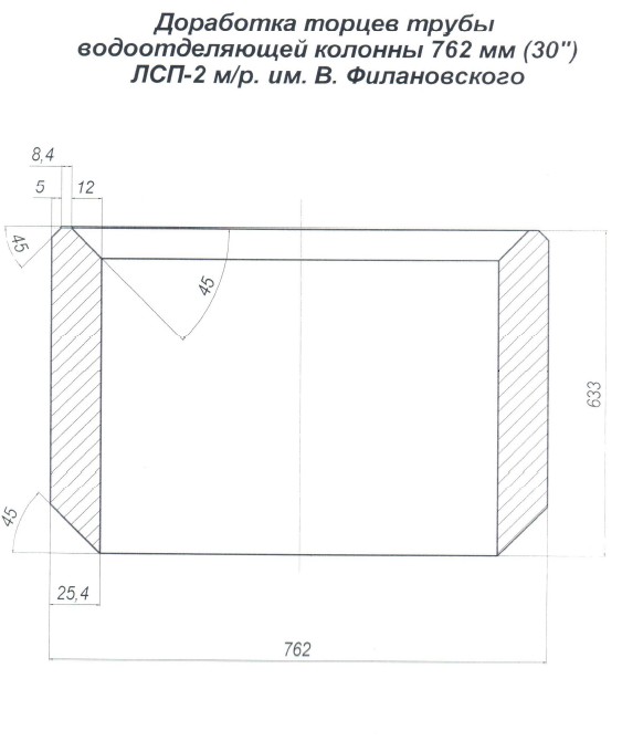 Эскиз доработки торцов трубы водоотделяющей колонны 762 мм (30ʺ) – на 1 листе;