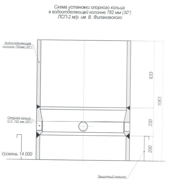 Схема установки опорного кольца водоотделяющей колонны 762мм (30ʺ)–на1листе;
