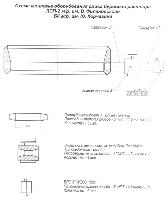 4 | Патрубок резьбовой 3ʺ.Длина общая – 250 мм. | 16 шт. (ЛСП-2 = 8 шт. БК = 8 шт.) | Тип присоединительной резьбы:3ʺ NPT 11,5 ниток Х 1ʺ.Коррозионностойкое исполнение – К1. |
