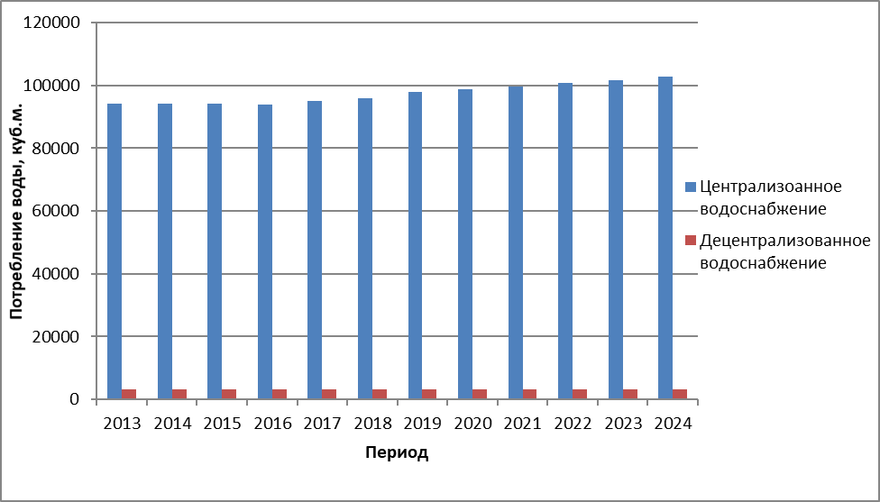 Изменение объемов водопотребления на период с 2013 до 2024 года показано на рисунке 4.1.