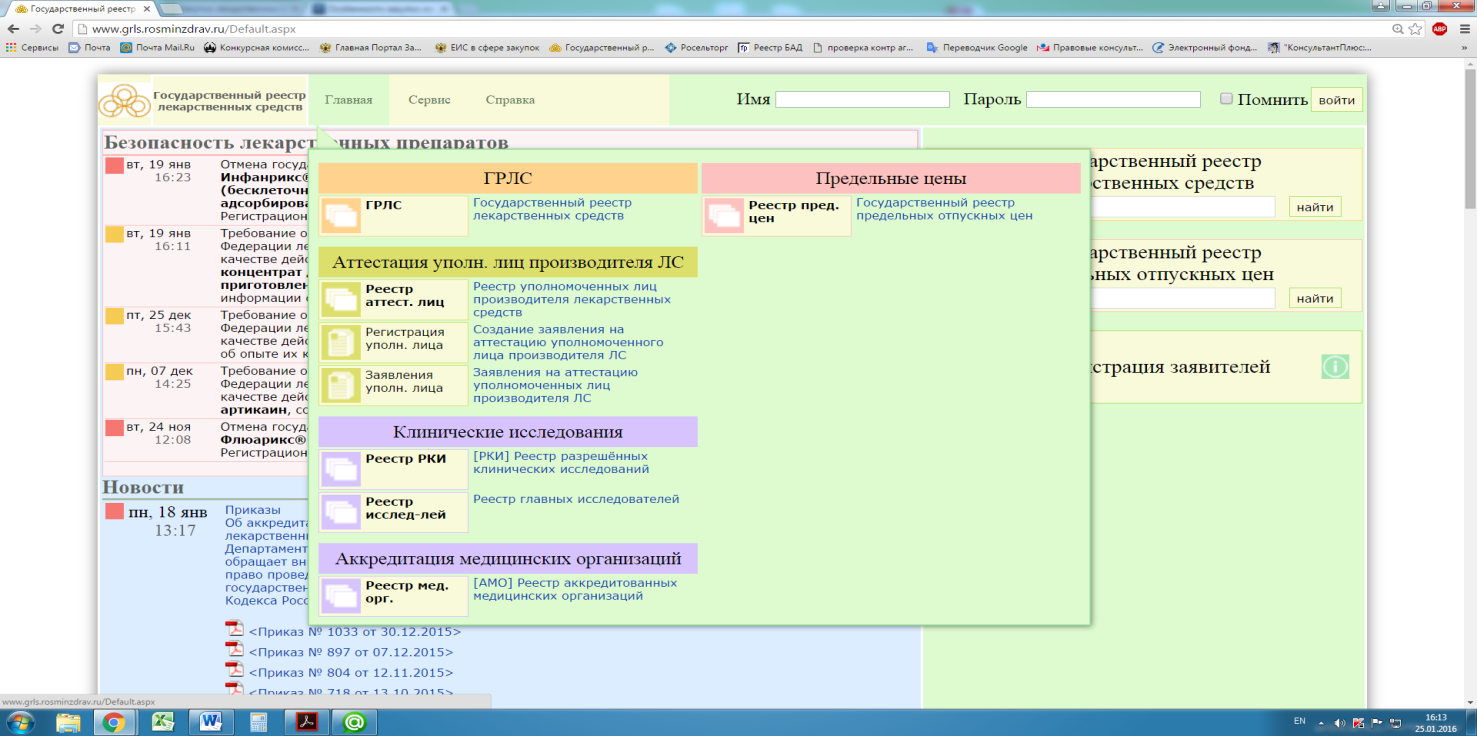 1. Для формирования ТЗ на закупку лекарственных средств необходимо зайти на главную страницу государственного реестра лекарственных средств (www. grls. rosminzdrav. ru).