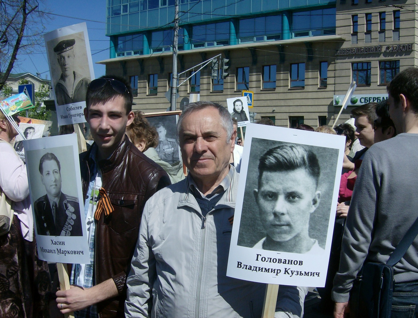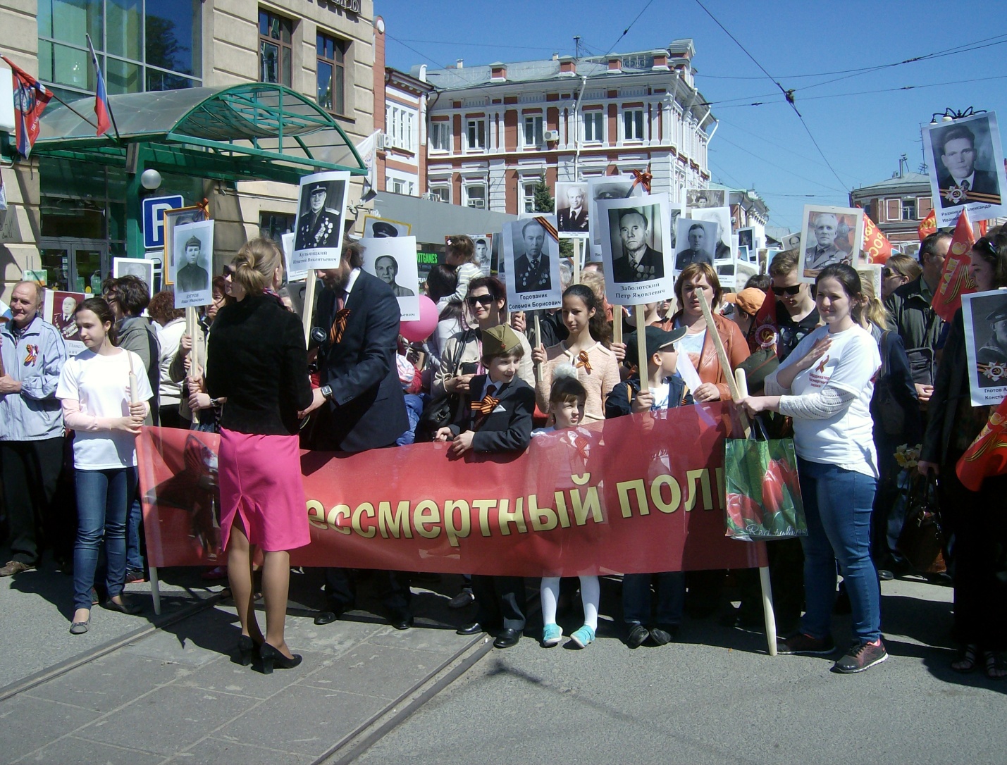 Студенты НСТ и руководитель музейного объединения «Отечества» , участники акции «Бессмертный полк» 9 мая 2015 года