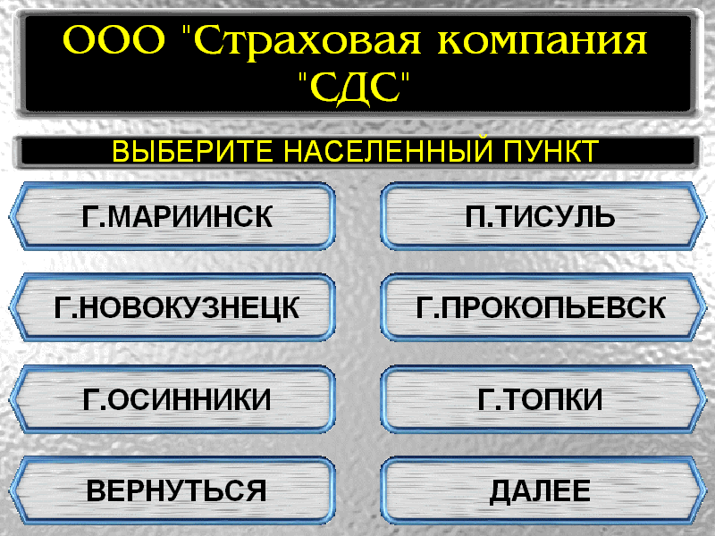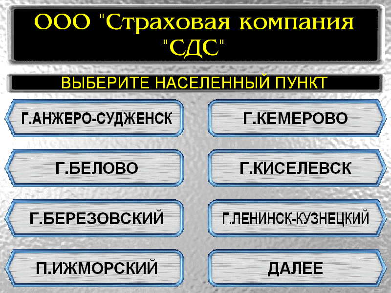 ШАГ 5 Выберите город (список городов на 3-х эранах). |