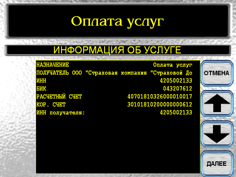 ШАГ 6 Проверьте информацию об услуге и нажмите кнопку «ДАЛЕЕ». |