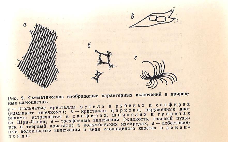 Илл. 11. Схематическое изображение характерных включений в природных самоцветах