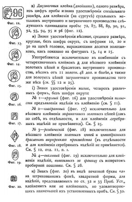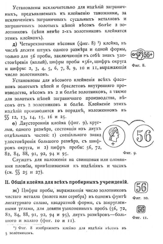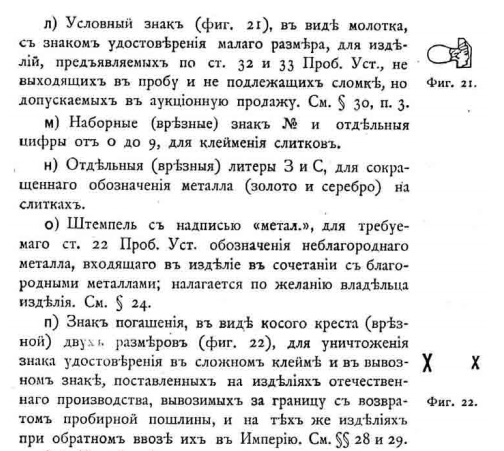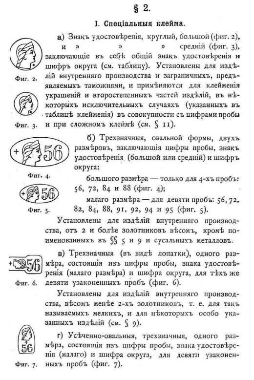 Илл. 4. Специальные и общие клейма из Правил клеймения золотых и серебряных изделий 1908 года