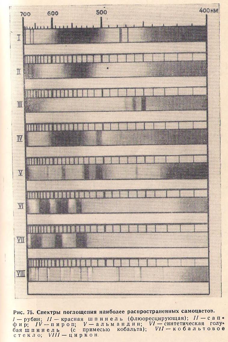 Илл. 5. Спектры поглощения наиболее распространённых самоцветов.