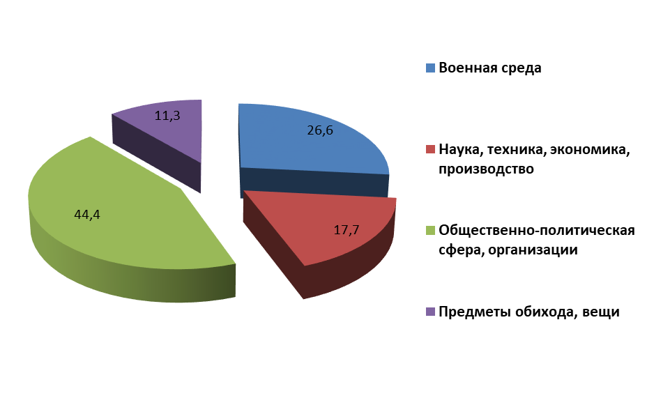 Военная среда | Наука, техника, экономика, производство | Общественно-политическая сфера, организации | Предметы обихода, вещи |