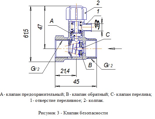 Клапан безопасности (рисунок 3) совмещает в себе три клапана: