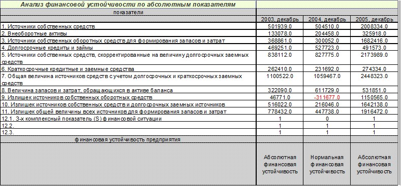 Анализ изменения показателей финансовой устойчивости Поляков в абсолютном выражении за весь рассматриваемый период представлен в таблице на рисунке № 15.