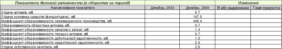 Анализ показателей деловой активности (в оборотах) за анализируемый период представлен в таблице на рис. № 19.