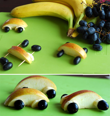 Поделка из яблок и винограда для малышей - машинка от сайта