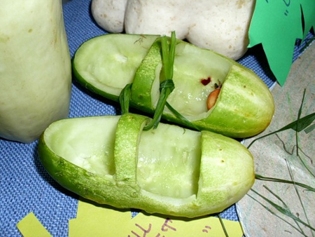 Башмачки из кабачков. Эта поделка должна особенно понравиться девочкам. Уж больно эти башмачки напоминают туфельки Золушки.