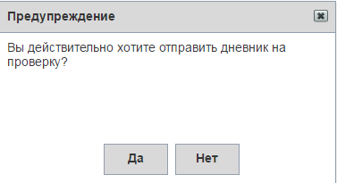 , откроется окно (Рисунок 23). Для отправки дневника нажмите кнопку «Да», для отмены отправки нажмите кнопку «Нет». В верхней части окна отобразится статус дневника «На рассмотрении».