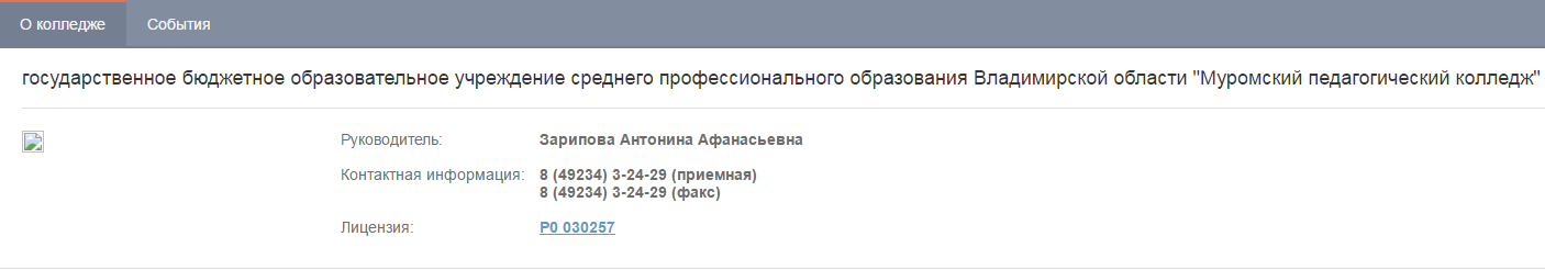 Рисунок 26 – Вкладка «О колледже»