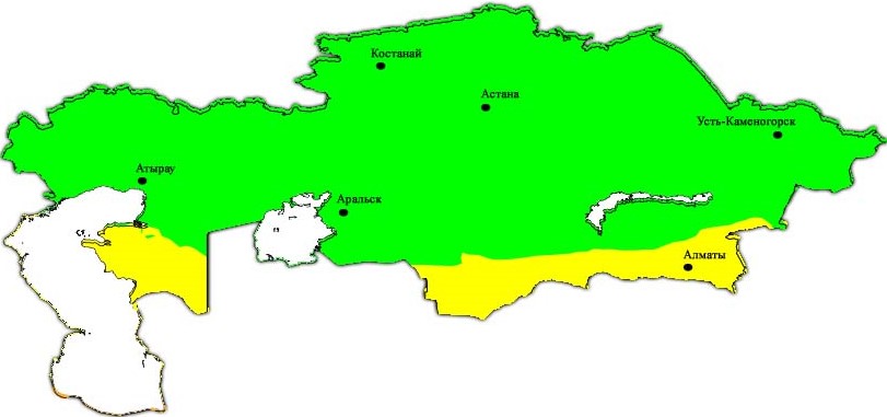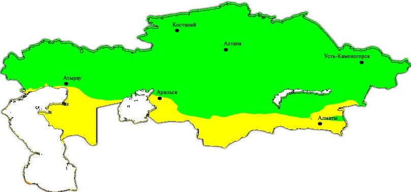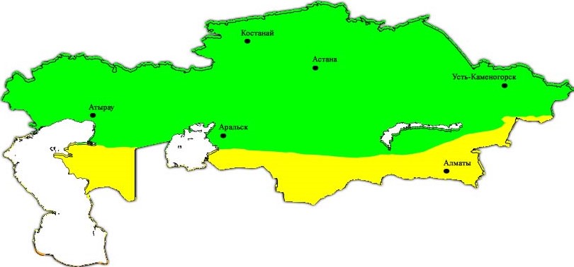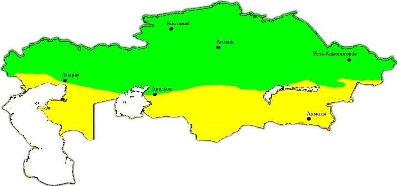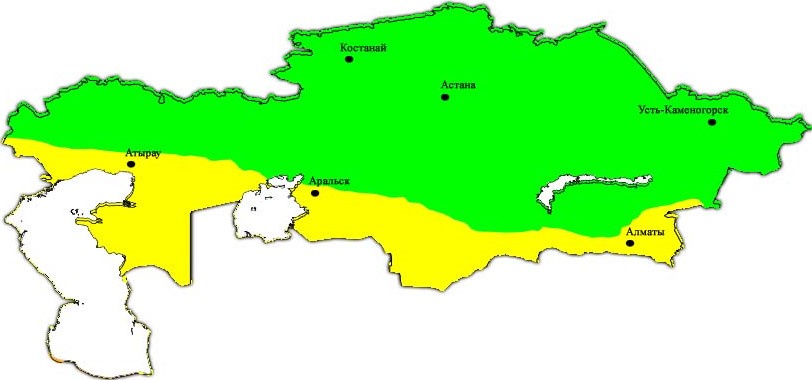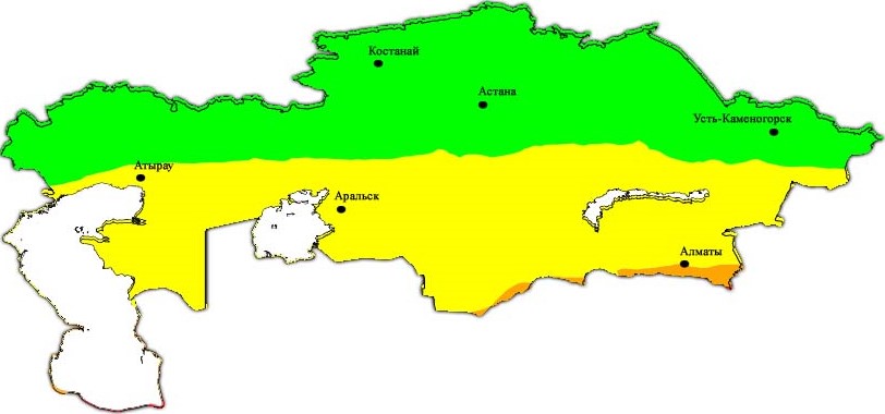 Рис. Распределение УФ индекса по территории Казахстана 8 сентября 2017 г.