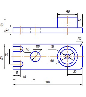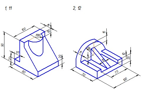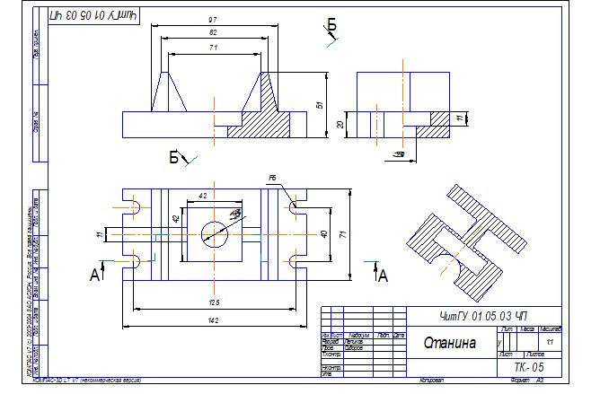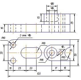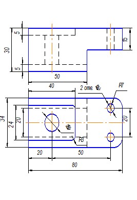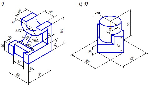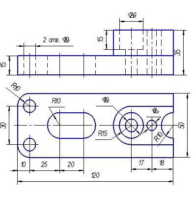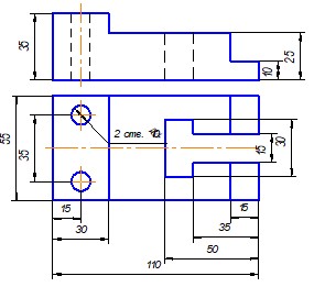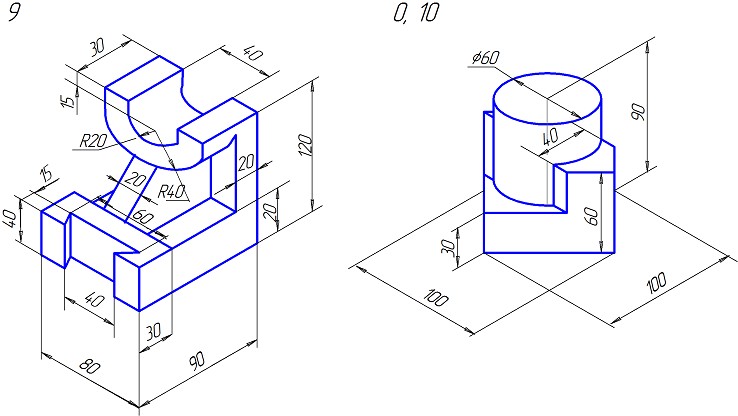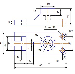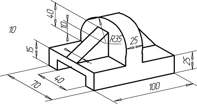 Задание. Построить три вида детали по данному наглядному изображению, нанести размеры (формат А 3).
