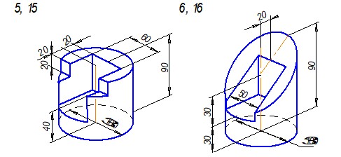 Задание. Построить третье изображение детали по двум данным, дать разрезы, построить натуральный вид наклонного сечения, а также прямоугольную изометрию детали с вырезом (формат А 3).