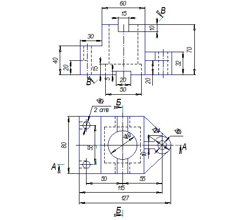 Лист № 2: Построение 3 вида по двум заданным, выполнение необходимых разрезов.