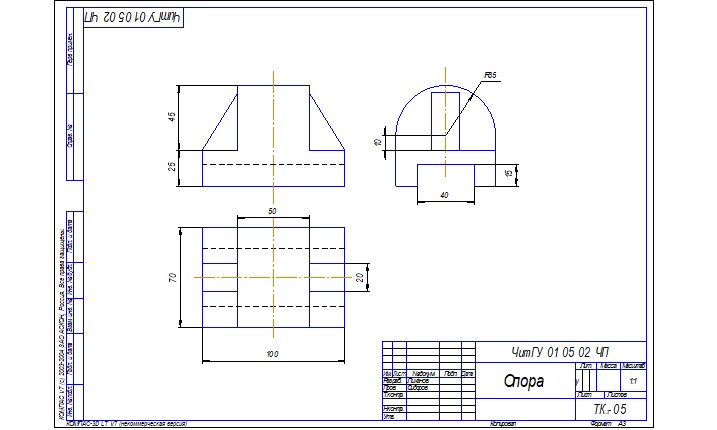 Общие сведения о Компас-график LT. Пользование компьютером как средством управления и обработки информационных массивов. Основные элементы интерфейса Компас-график LT. Создание чертежа. Инструментальная панель. Панель расширенных команд, панель специального управления, строка параметров. Глобальные и локальные привязки. Выделение объектов. Использование вспомогательных построений. Простановка размеров. Ввод линейных, диаметральных, угловых размеров. Построение плоских изображений. Штриховка областей. Ввод и редактирование текста. Заполнение основной надписи. Ввод технических требований. Вывод на печать. ГОСТы 2.301-68; 2.302-68; 2.303-67; 2.304-81. Что называется, видом?14.1. Основные виды.
