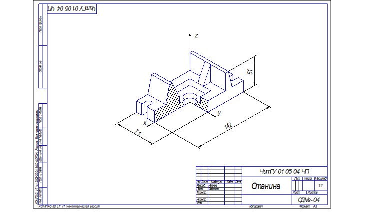 Лист № 1: Построение 3-х видов по заданному наглядному изображению, ф. А3.