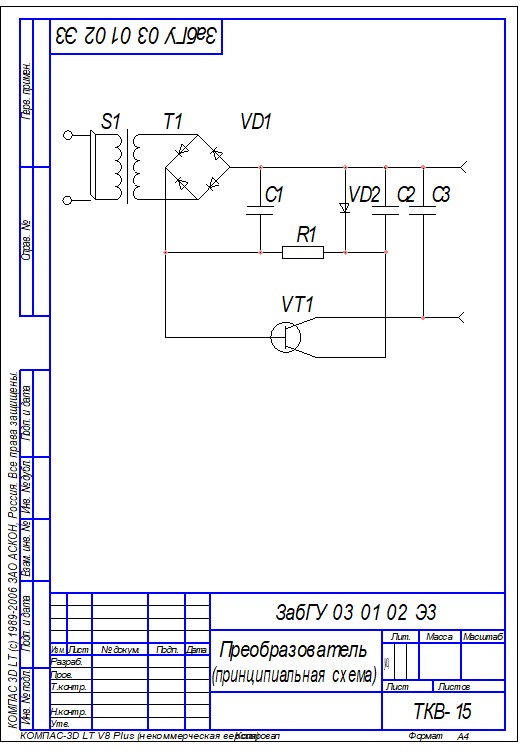 Образец выполнения принципиальной схемы