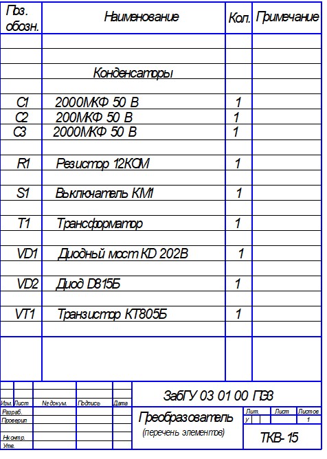 Образец выполнения документа «Перечень элементов»